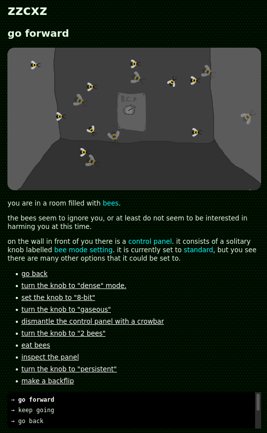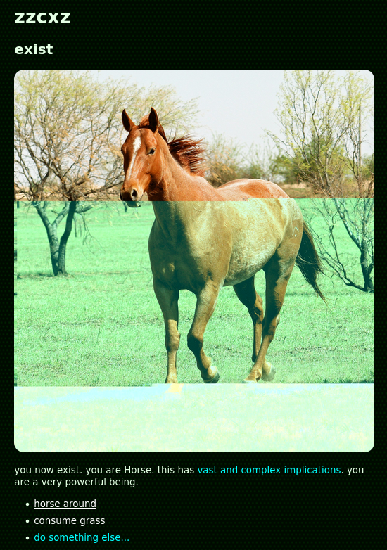 zzcxz is an interactive fiction site. Anyone may choose what happens next when they decide to “do something else…”